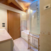 Dal disbrigo si accede alla zona notte, composta da un bagno finestrato con sanitari sospesi e vasca con box doccia, due stanze di cui una con cabina armadio e balcone.