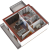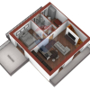 Questa esclusiva soluzione abitativa posta al 1° ed ultimo piano risulta molto luminosa, grazie alla tripla esposizione gode di luce naturale tutto il giorno, ha ingresso indipendente, attraversando la corte attrezzata con il verde si accede alla zona d'ingresso disimpegnata dalla quale si può anche accedere direttamente al grande box auto ( 48 mq) ubicato al -1, mentre una rampa ci porta al 1° piano dove subito il colpo d'occhio è dato dai due punti luce del soggiorno- living con ampia zona cucina a vista, due camere da letto, di cui la padronale, con terrazzino dedicato e un ampio bagno.