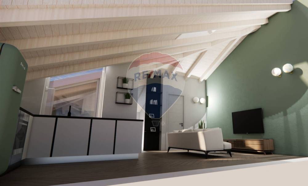 Questa unità, posta al terzo piano è impreziosita da una magnifica controsoffittatura in legno di pino bianca e da un terrazzo a tasca con vetrate che rendono luminoso l'ambiente.
