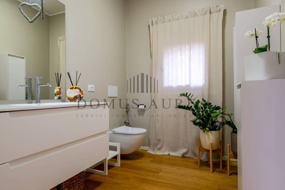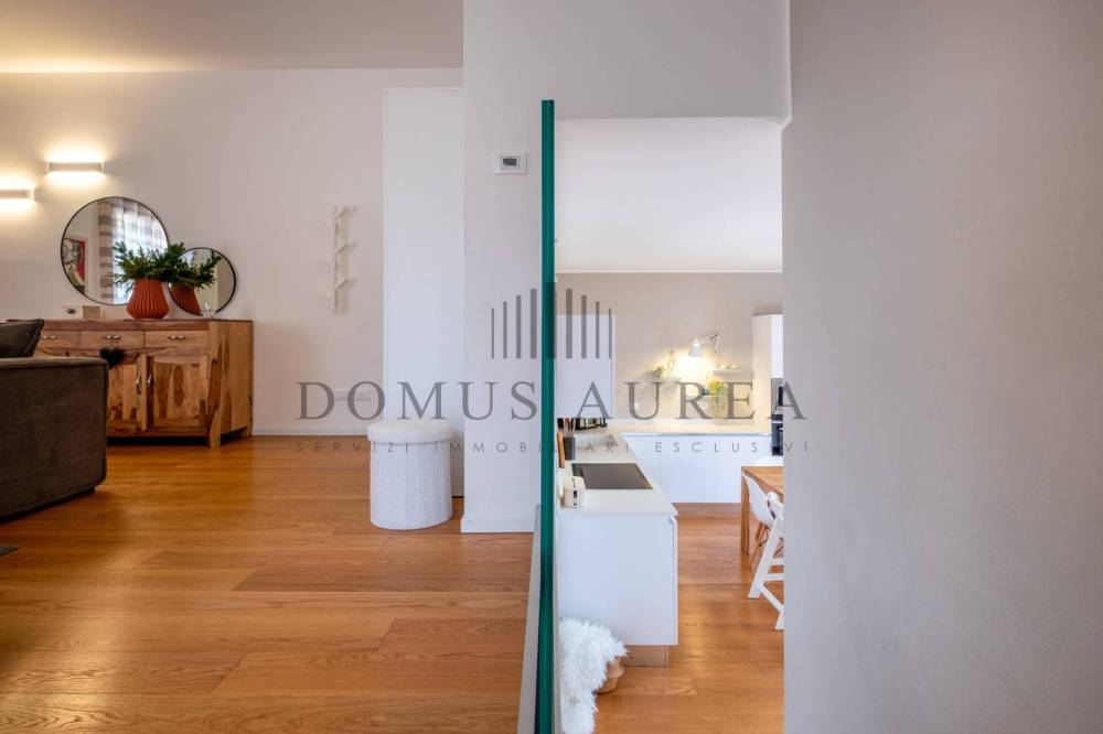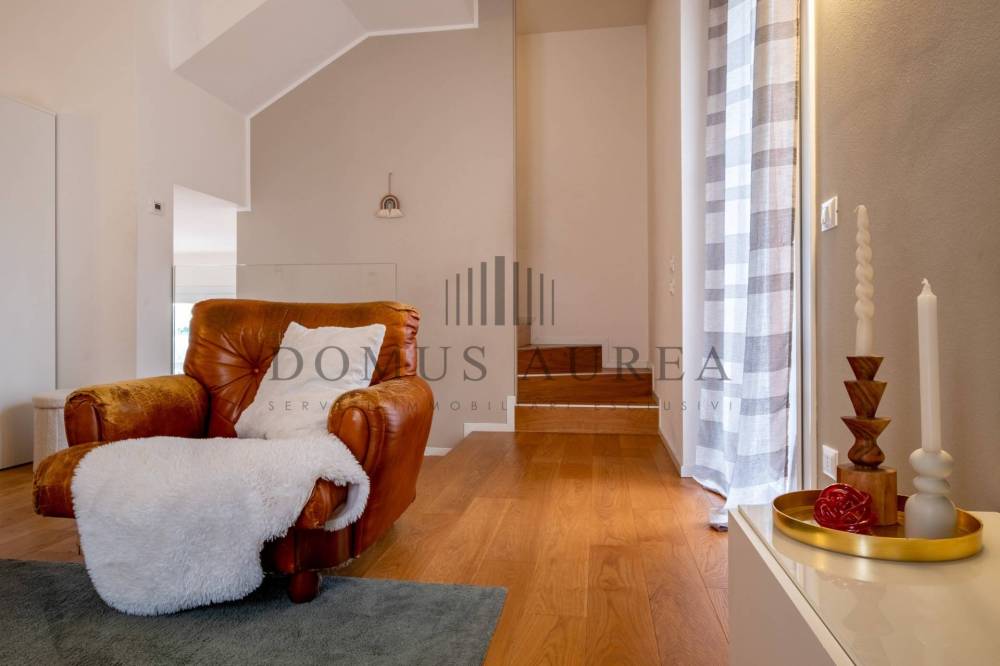 La zona notte comprende una camera matrimoniale con bagno privato, momentaneamente adibito a cabina armadio e ulteriori due camere spaziose, di cui una con accesso diretto al terrazzo, ottime anche come studio o stanza per ospiti. A completamento del piano, un ulteriore bagno finemente rifinito e un angolo lavanderia .