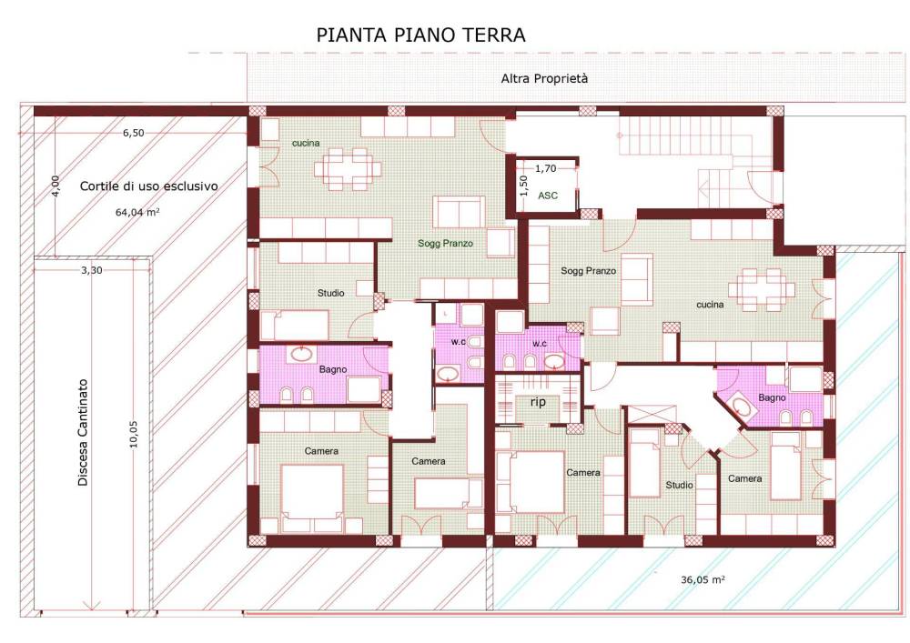 -1 Appartamento con spazio esterno e box auto; 1 Appartamento con spazio esterno più ampio ma senza box auto.