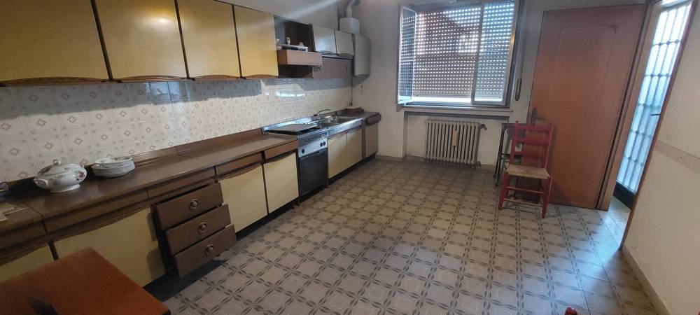 Limmobile è disposto su 3 livelli. Al piano terra troviamo, un generoso bagno con vasca, doccia, doppio lavandino e servizi, due camere, una cucina abitabile, e un ulteriore ampio locale utilizzato come ripostiglio.