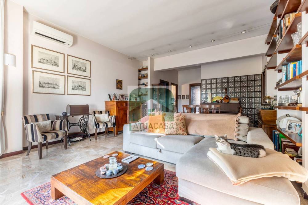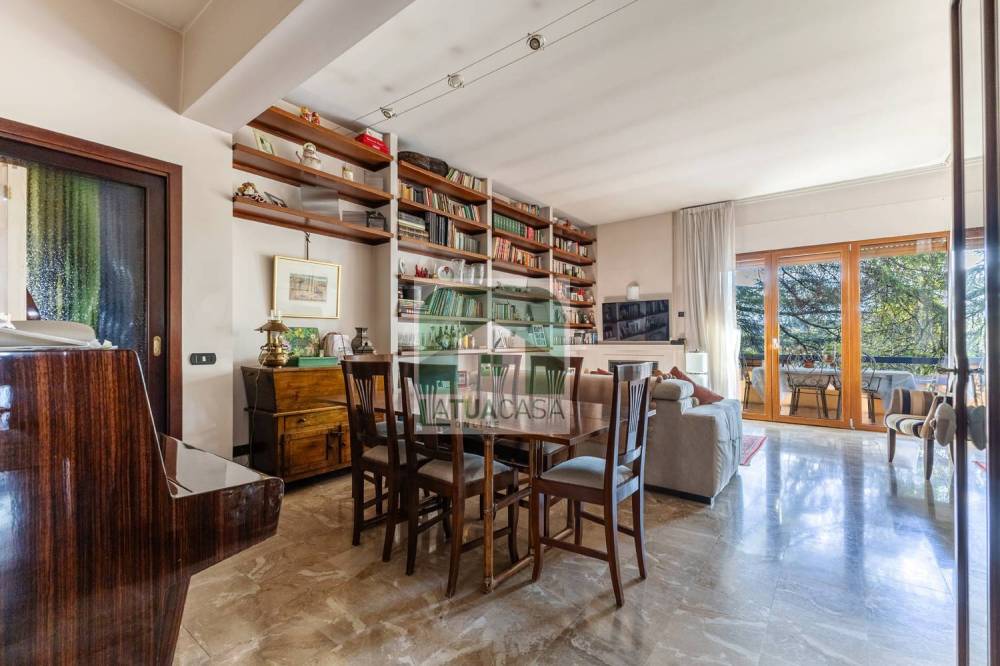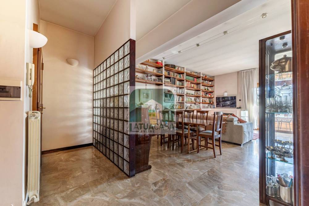 Lingresso conduce a un ampio soggiorno, seguito da una cucina abitabile, un comodo ripostiglio e un vano aggiuntivo adibito a studio, dotato di porta finestra che permette laccesso a uno dei tre spazi esterni. Il disimpegno, corredato da armadi a muro, introduce la zona notte, composta da tre camere da letto, di cui una con cabina armadio, e da due bagni, uno dei quali finestrato. Completano la proprietà un ulteriore balcone, accessibile da due camere, e un terrazzo collegato al soggiorno e alla terza camera, perfetto per piacevoli momenti di relax allaperto.