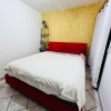 L'appartamento è composto da ingresso su disimpegno, camera da letto matrimoniale, bagno con box doccia, cucina abitabile, soggiorno e piccola corte esterna.