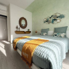L'ampia zona giorno open-space è perfetta per trascorrere momenti di relax e convivialità. Le due camere da letto matrimoniali, una delle quali adibita a cabina armadi, garantiscono spazio e funzionalità. Il bagno finestrato, dotato di un moderno box doccia, completa l'unità. Il riscaldamento a pavimento autonomo, alimentato da pannelli fotovoltaici sul tetto e pompe di calore caldo/freddo, assicurano un comfort ottimale in tutte le stagioni e spese di gestione minime.
