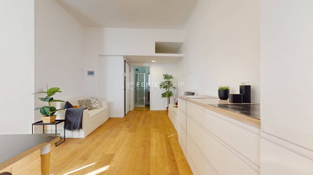 L’ingresso conduce a un soggiorno luminoso e accogliente, un ambiente ben distribuito che si integra armoniosamente con la cucina a vista, rendendo la zona living funzionale e piacevole. La zona notte è composta da una camera matrimoniale spaziosa e luminosa, pensata per garantire comfort e tranquillità. L’appartamento dispone di un bagno rinnovato e ben organizzato, progettato per offrire praticità e un utilizzo confortevole degli spazi.