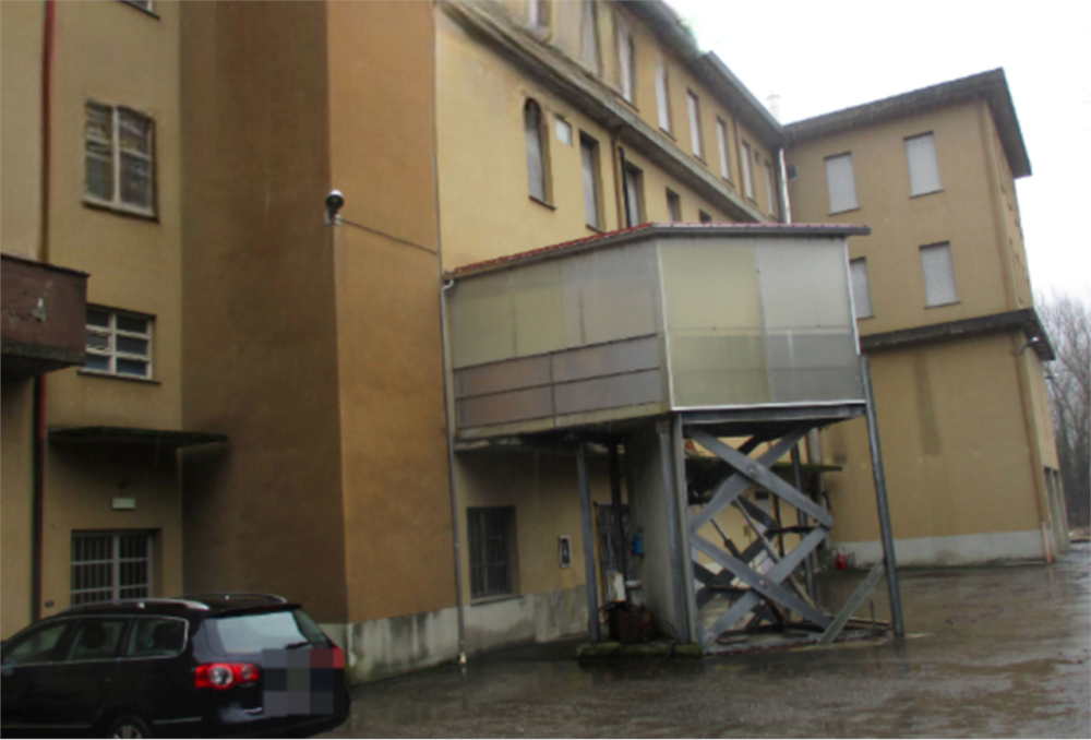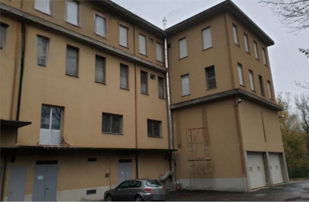 Trattasi di uan struttura da terra a tetto, elevato di quattro piani fuori terra, in parte adibito a salumificio, lavorazione e stagionatura dei prosciutti di mq. 2661 e ad uffici di mq. 209, ed in parte adibito a civile abitazione al piano secondo ammezzato di mq. 113 e 6 vani con un soggiorno, due camere, una cucina, un bagno e una terrazza.