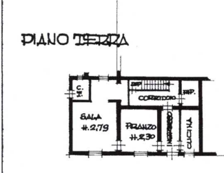 - Piano terra: ingresso, cucina, sala da pranzo, soggiorno, ripostiglio, corridoio/vano scale ), centrale termica, cantina/deposito;