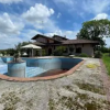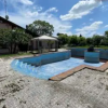 Fa parte della struttura un'autorimessa di 23 mq posta al piano terra, centrale termica, piscina esterna con area circostante piastrellata e terreno seminativo di pertinenza di mq. 3.240.