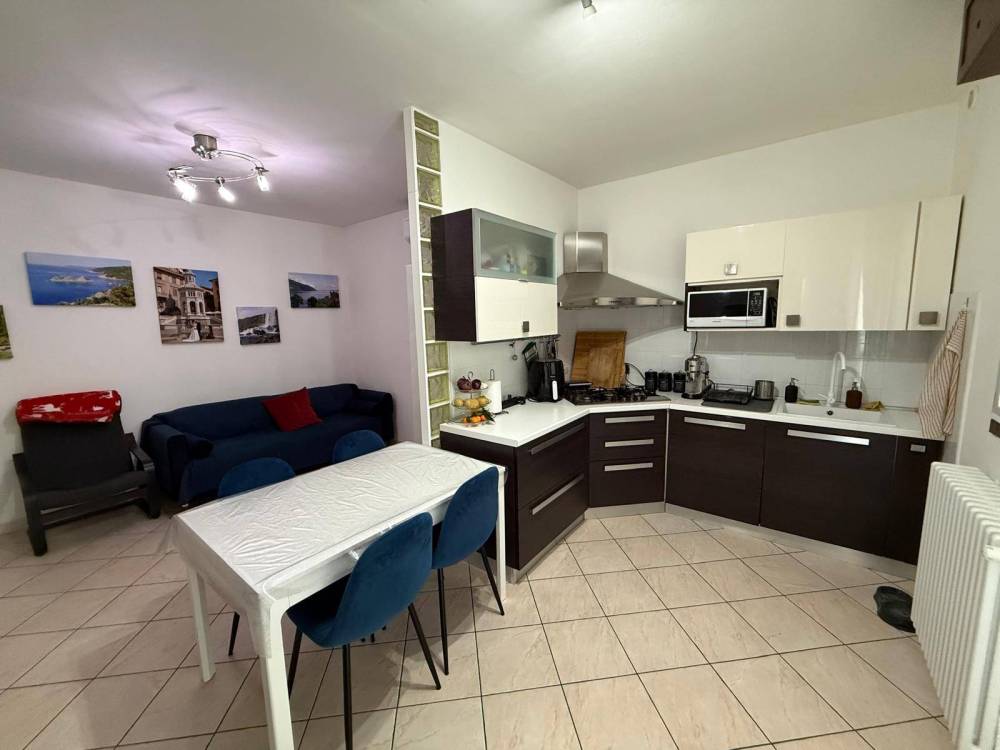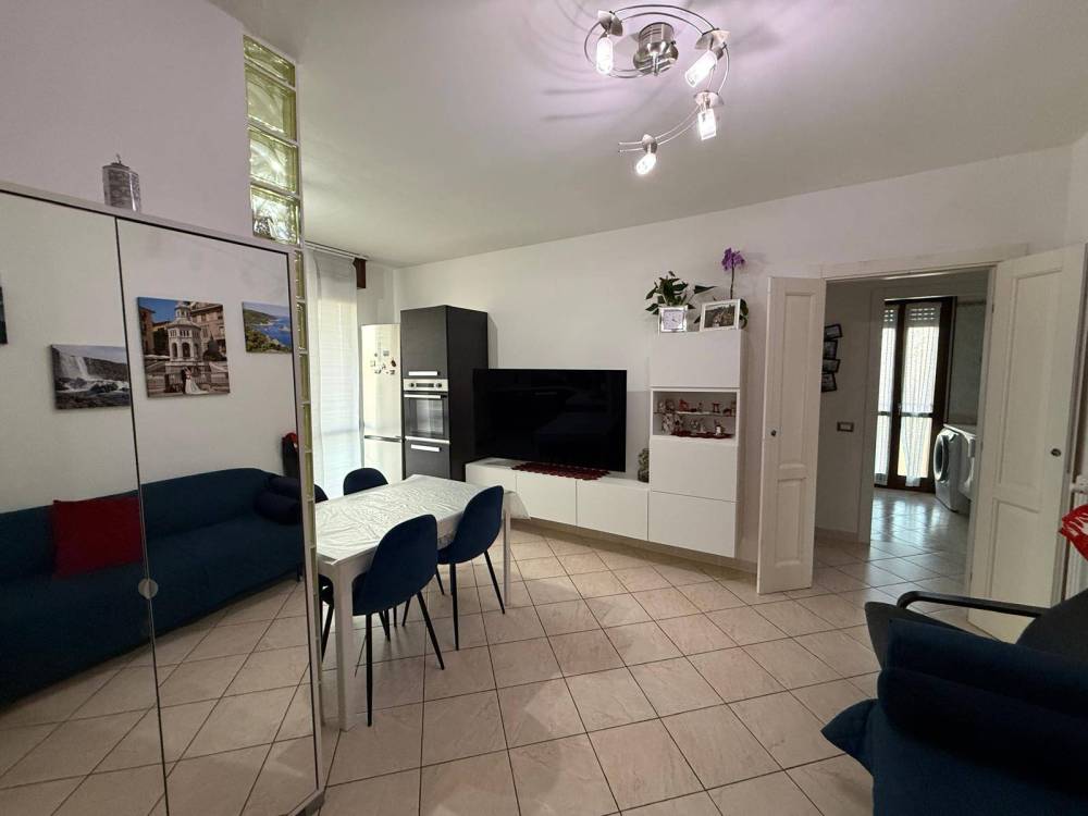 Appartamento composto da: un ingresso su ampia zona living con soggiorno e cucina a vista su misura, balcone ampio, bagno finestrato con Box doccia e la zona notte con 2 camere da letto matrimoniali.
