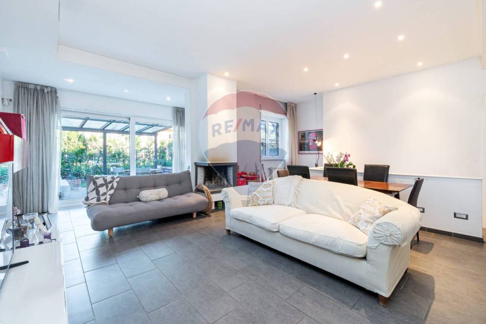 Completa la proprietà un comodo giardino in parte pavimentato, dotato di pergotenda elettrica e illuminazione e in parte lasciato a verde.