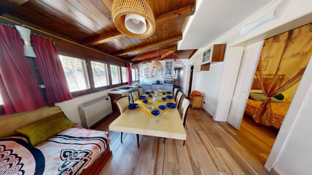 A completare il tutto, il giardino privato di mq. 130 dotato di cucina esterna, lavello e docce esterna, circonda l'immobile su due lati, offrendo uno spazio ideale