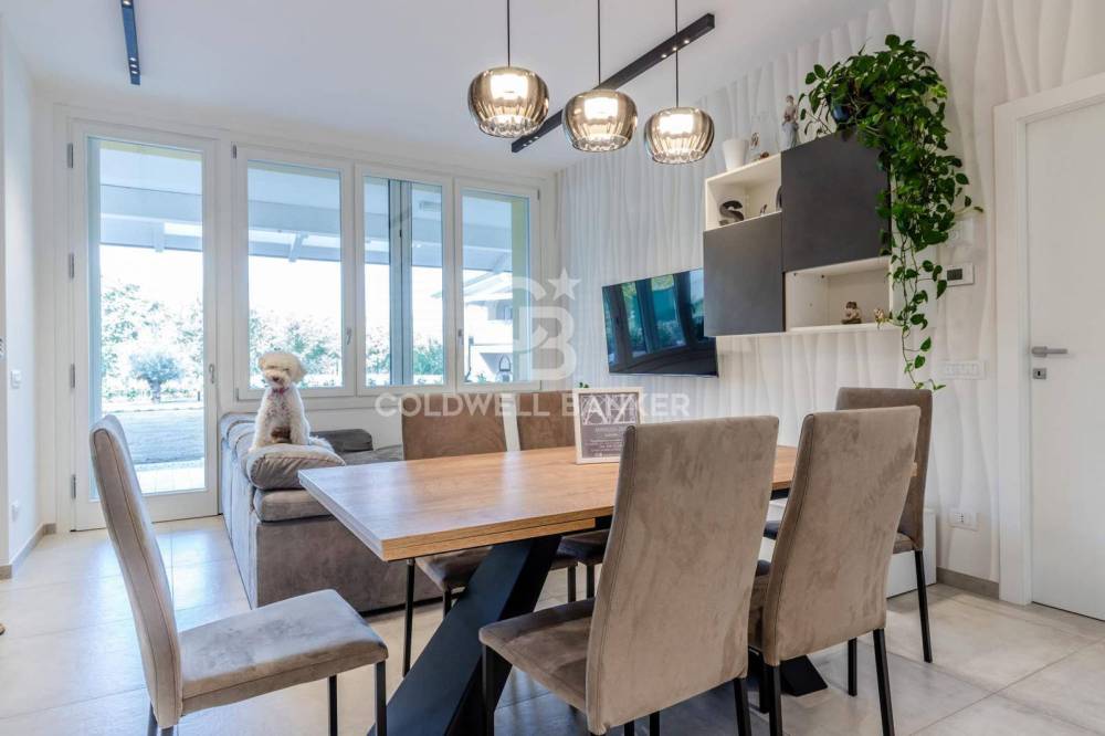 In zona residenziale verde e tranquilla, adiacente il centro del paese, presentiamo in vendita un appartamento di nuova costruzione, al piano terra con giardino privato di 133 metri quadri, di una piccola palazzina a risparmio energetico con pannelli fotovoltaici, in classe A4, edificate con le più innovative tecniche costruttive, internamente composto da: ingresso, soggiorno con cucina a vista e loggia, disimpegno notte, ripostiglio, due camere da letto, due bagni, e accessori un garage e un posto auto. Capitolato completo di ogni finitura disponibile in agenzia.