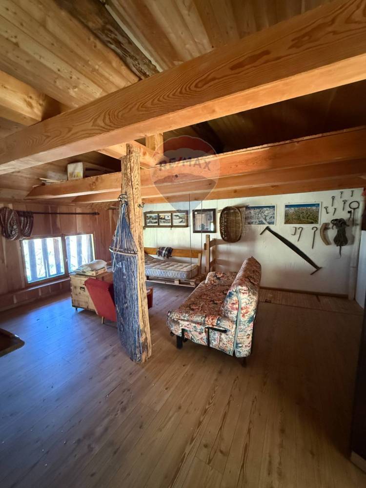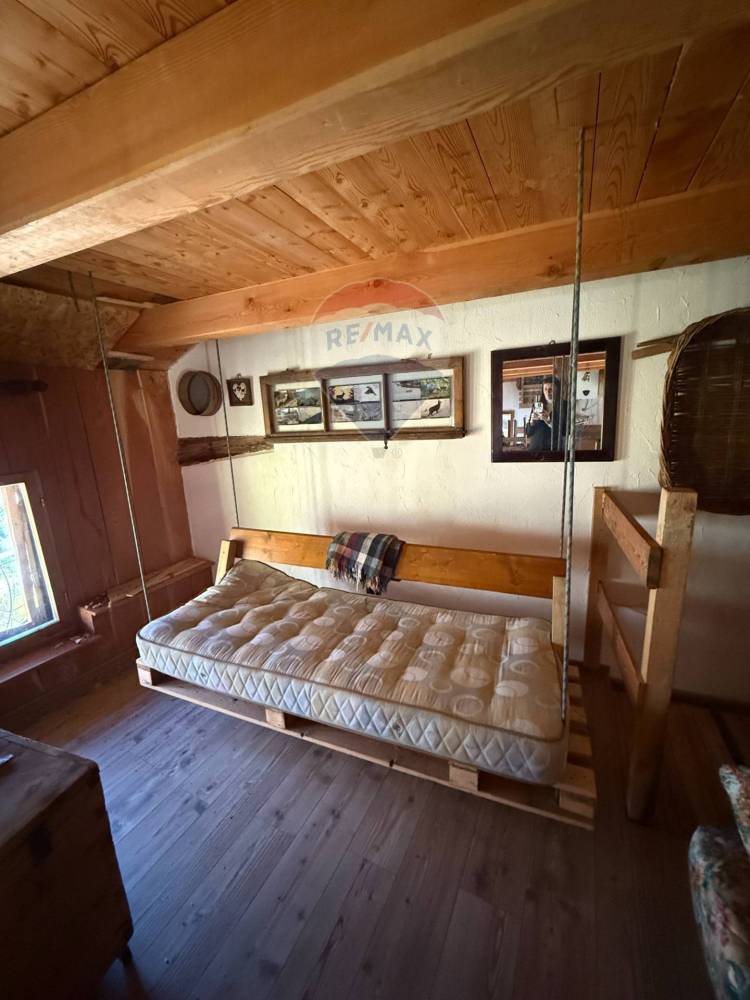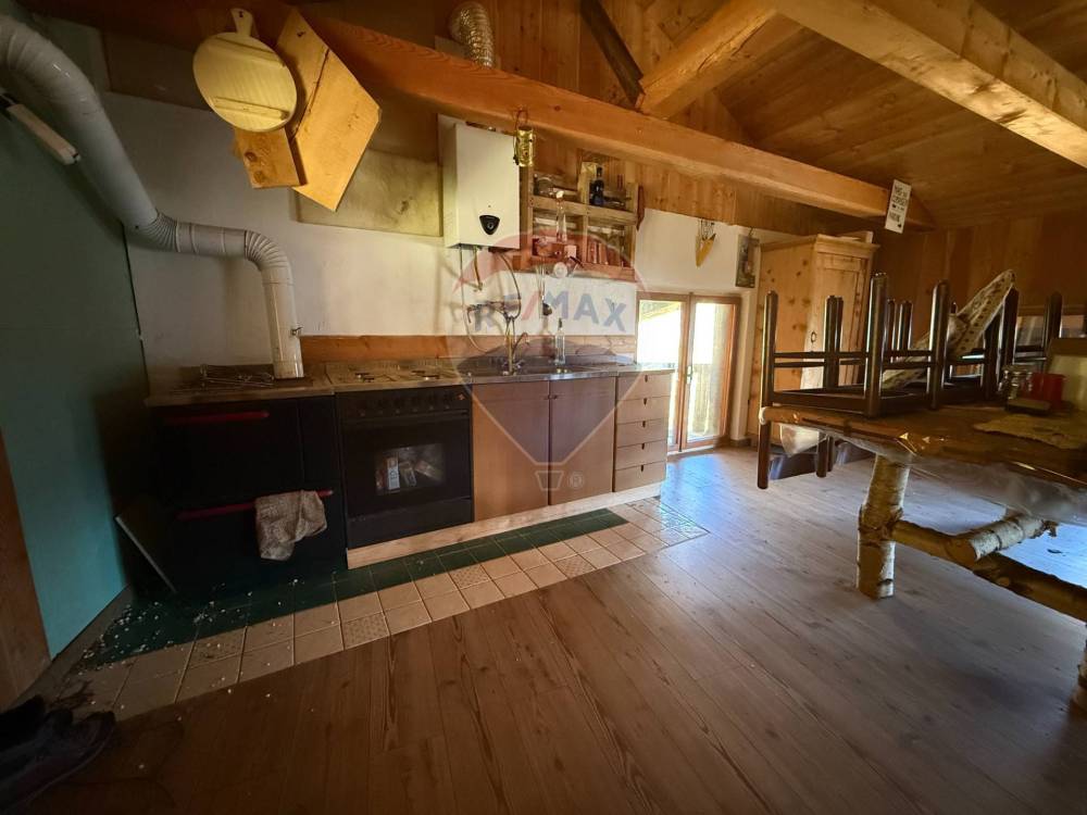 Gli infissi e le finestre, anch'essi in legno, conferiscono alla baita un'atmosfera calda e rustica, perfetta per chi cerca una fuga dalla vita frenetica della città, desidera rilassarsi e godere della vista mozzafiato sulle montagne circostanti. L'interno della baita è parzialmente arredato.