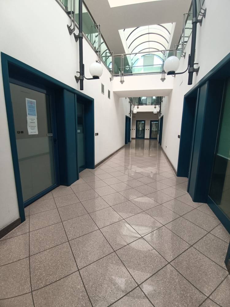 SAN BENEDETTO DEL TRONTO - Porto D'Ascoli - In centro direzionale del 2006 in zona commerciale e residenziale, ufficio di circa 108 mq posto al piano primo con doppia esposizione, composto da ingresso con sala d'attesa, bagno di servizio con antibagno e tre comode stanze. L'immobile ha impianto di cablaggio con rete centralizzato, controsoffittatura e impianto di aria caldo/fredda con termostato regolatore in ogni stanza. La struttura è servita da portiere all'ingresso e ascensore ai piani. Il condominio è elegante e rifinito in ogni dettaglio. Possibilità di ampliamento con ufficio adiacente di circa 83 mq. Riferimento agenzia 6932 DiLeoImmobiliare