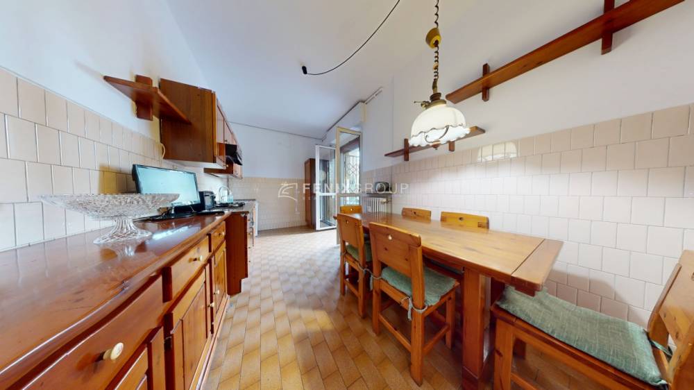 Proseguendo, troviamo una spaziosa e funzionale cucina abitabile, anch’essa molto luminosa grazie alla porta finestra che dà accesso a un secondo terrazzino, comodo e con affaccio interno.