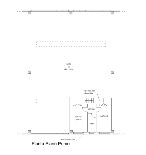 Capannone artigianale composto al piano terra da ingresso comune, deposito costituito da ampio vano a doppio volume, antibagno e due bagni, ufficio, ripostiglio.