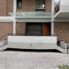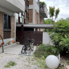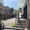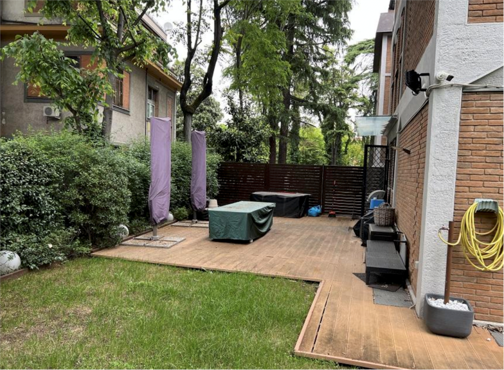 Accanto alla cucina si trova un piccolo disimpegno con l'unica porta-finestra che conduce alla seconda porzione di corte/giardino, dove è presente anche una scala in ferro che collega al piano interrato con lavanderia.