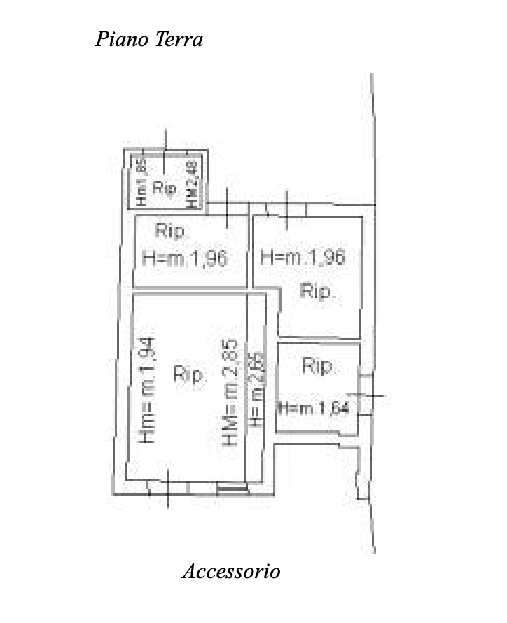 L'abitazione si sviluppa su due livelli, il piano terra suddiviso in cucina e soggiorno, due stanze, antibagno e bagno; percorrendo la scala a giorno che troviamo entrando sulla destra, si accede al piano primo, suddiviso in un bagno, due camere da letto, un ampio disimpegno con accesso al balcone.