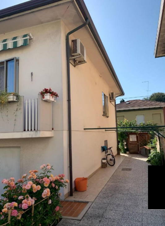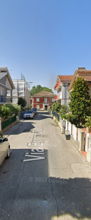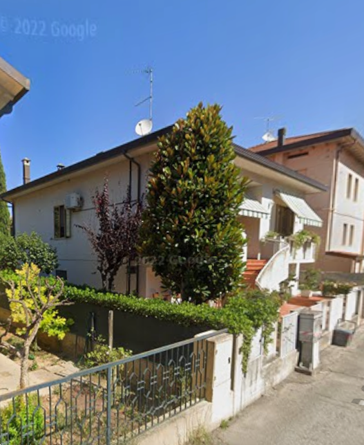 Villetta a schiera a Gabicce Mare (PU) in Via Enrico Toti. Al piano seminterrato si trovano un ampio garage servito da w.c., accessibile sia dall'esterno sia dall'interno tramite scala di collegamento ai piani superiori, oltre a un ulteriore w.c. con porta-finestra che conduce al giardino, un disimpegno e una corte esclusiva che circonda l'abitazione su tre lati, dotata di scala esterna per l'accesso al piano terra rialzato e rampa carrabile verso il garage. Il piano terra rialzato ospita l'ingresso con soggiorno, affacciato su un balcone sul fronte dell'edificio, la cucina con uscita su un balcone laterale, un ripostiglio/dispensa, un w.c. di servizio con antibagno e un disimpegno con scala che collega ai piani superiori. Al primo piano si trovano una camera singola e un vano guardaroba, entrambe con balcone, una camera matrimoniale con balcone laterale, un bagno finestrato con doccia e un disimpegno con scala interna. Il piano secondo è occupato da un unico locale sottotetto, con altezze variabili, finestrature e lucernaio, oltre a intercapedini nelle parti più basse. Soluzione ideale per chi cerca una casa ampia, articolata su più livelli e dotata di comodi spazi esterni.