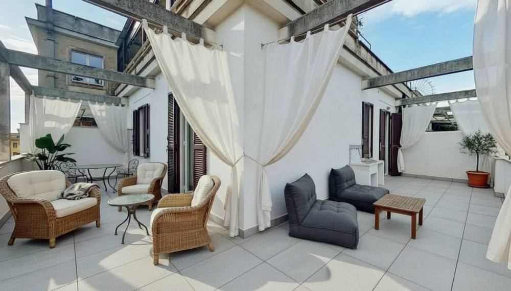 Splendido terrazzo di 75 mq, vero fulcro della casa, perfetto per momenti di relax, aperitivi o cene allaperto