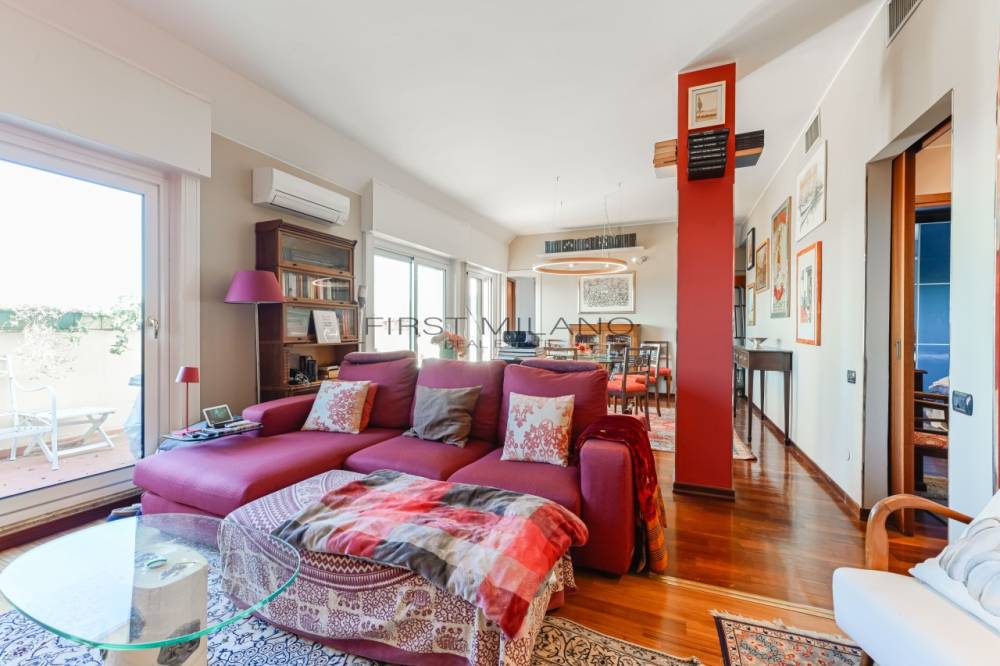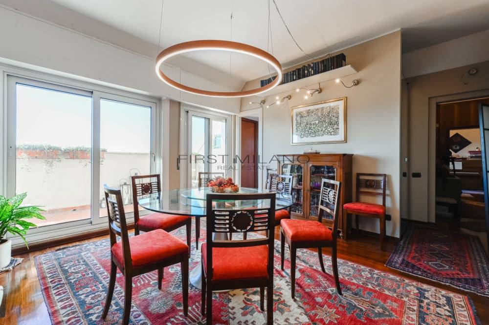 La soluzione proposta è un elegante attico e superattico disposto su due livelli.