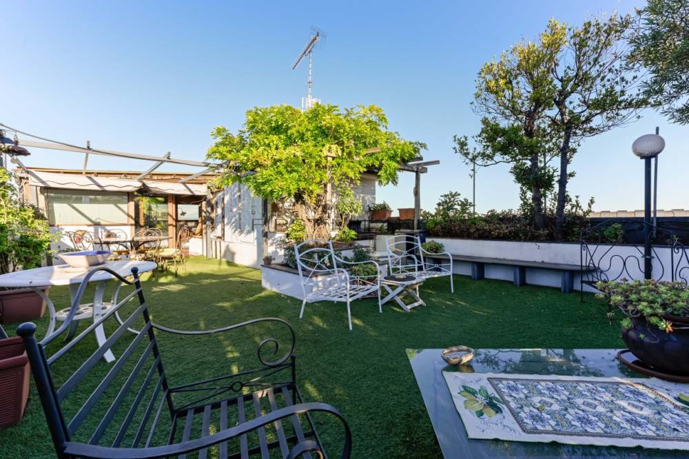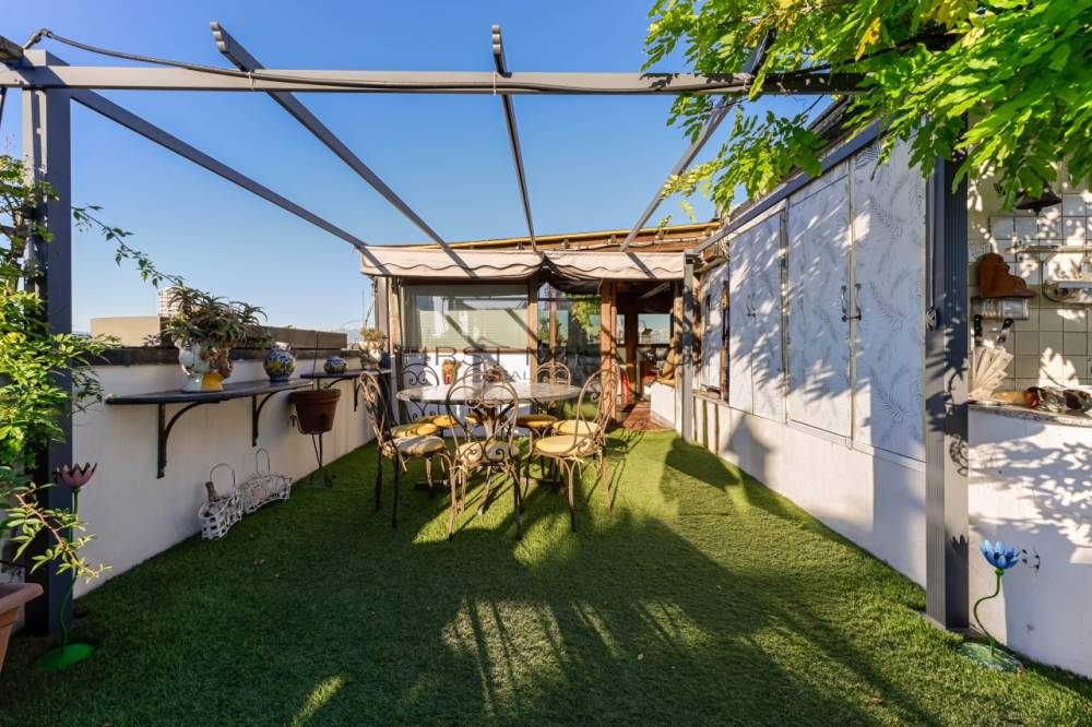 Al piano superiore si trova una veranda luminosa con accesso a un ampio terrazzo abitabile, perfetto per momenti di relax o convivialità all’aperto.
