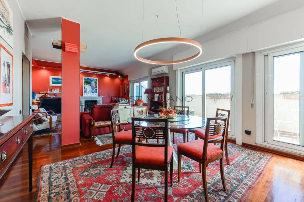 L’ingresso, servito da ascensore con accesso diretto, si apre su un accogliente disimpegno che conduce a un ampio salone doppio con affaccio su grande balcone. La cucina abitabile è spaziosa e funzionale. La zona notte comprende tre camere matrimoniali, ciascuna dotata di balcone privato e bagno en suite.