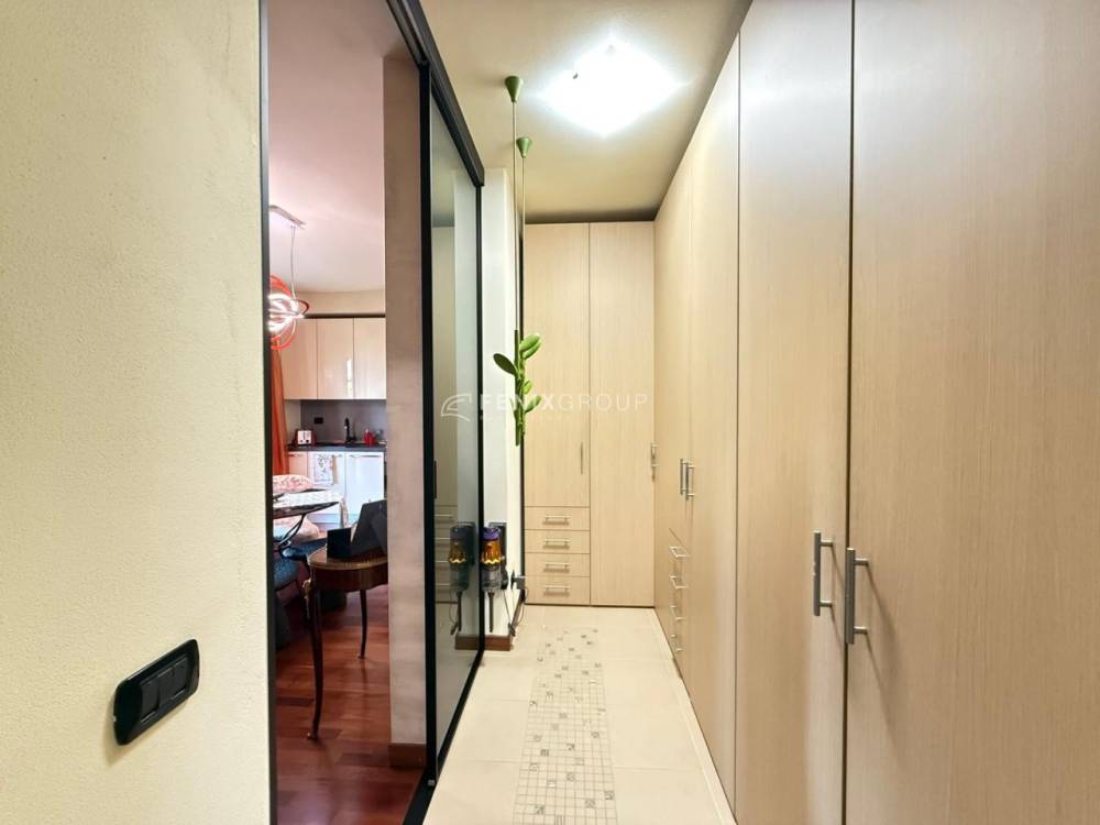 L’immobile presenta finiture di qualità, porte scrigno in cristallo e spese condominiali contenute (circa 65 €/mese).