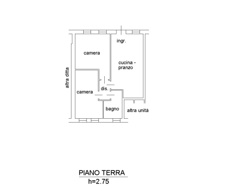 L'immobile è posto al piano terra ed è composto da soggiorno con cottura, due camere da letto e un bagno, oltre ad un ufficio di circa 63 mq e un magazzino di circa 18,40 mq.
