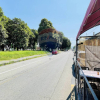 Ingresso carraio esterno per carico e scarico merci con quattro posti auto al coperto.