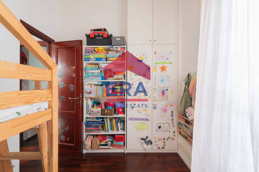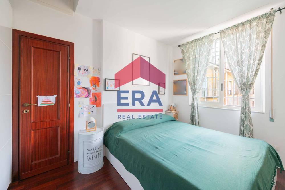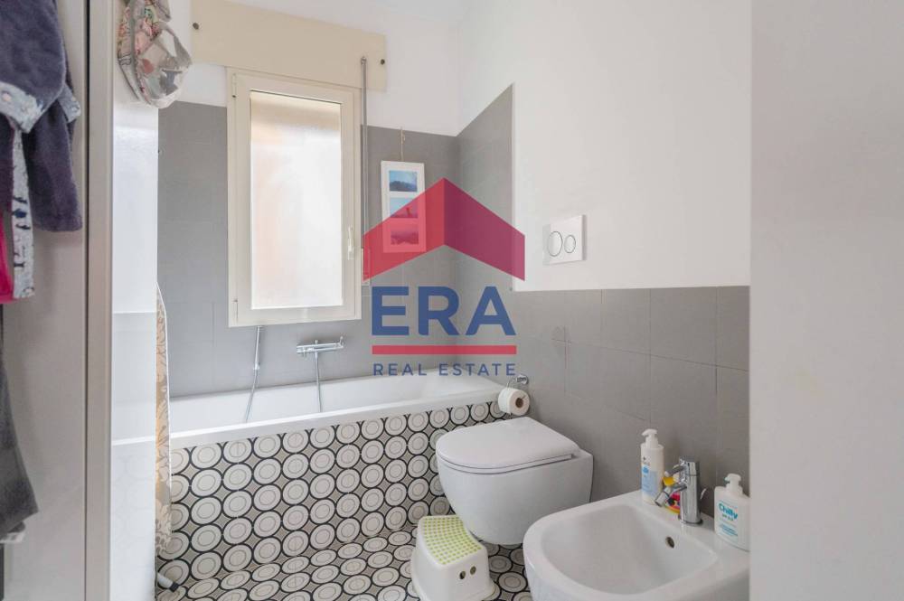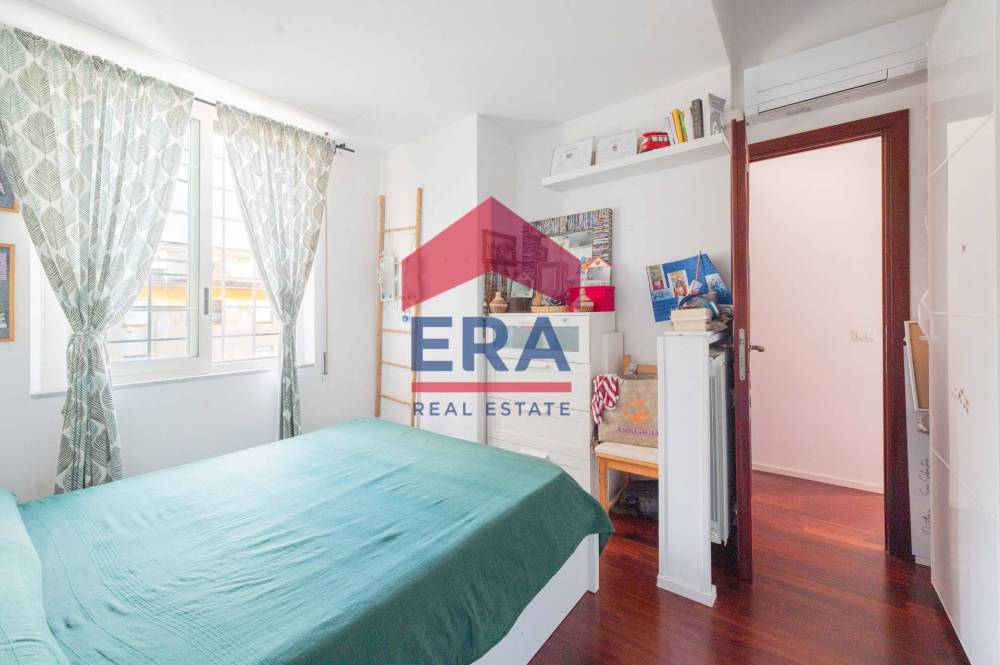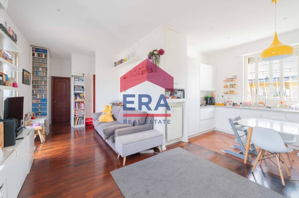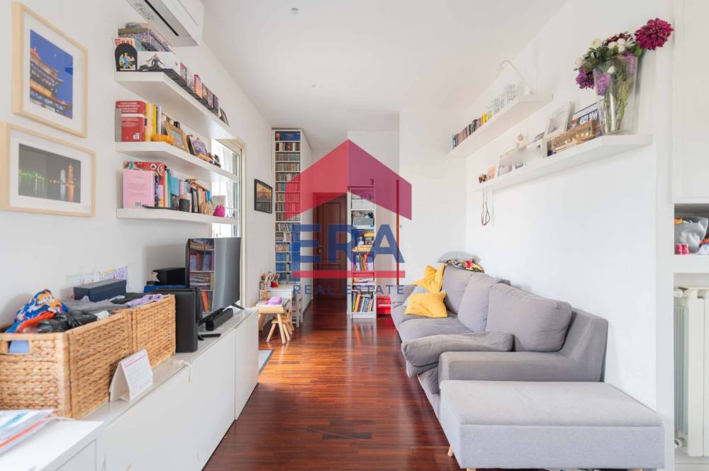 Lappartamento si apre su un luminoso soggiorno con doppia esposizione con cucina a vista. La zona notte è composta da una camera matrimoniale con bagno "en suite" con vasca, una cameretta con accesso diretto al balcone e un secondo bagno con doccia.