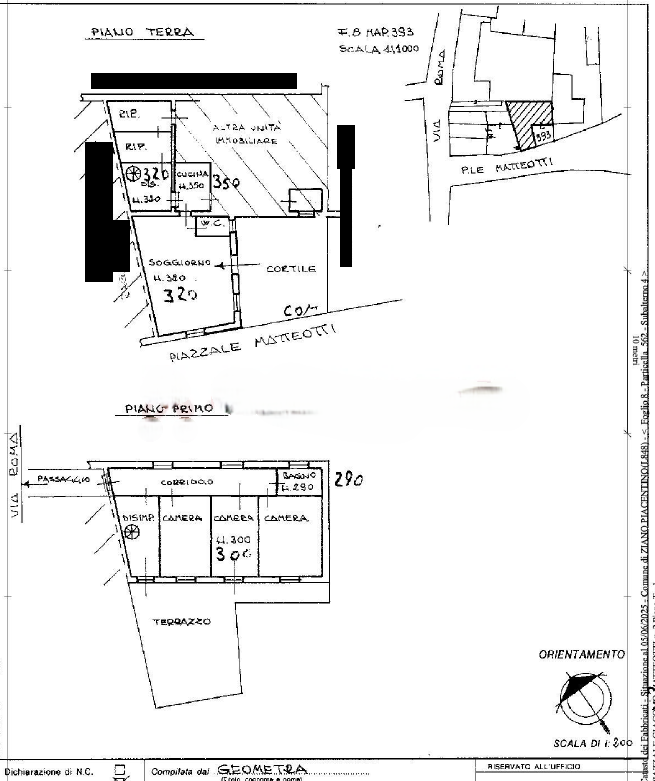 Piena proprietà di casa indipendente su due livelli con autorimessa posta al piano terra in Ziano Piacentino (Pc), Piazzale Matteotti n. 2.