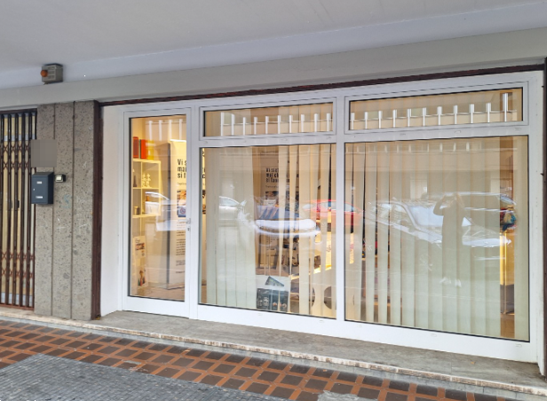 L'immobile è ubicato al piano terreno in edificio condominiale, composto da ampio locale negozio con tre vetrini prospicienti loggiato coperto condominiale, ufficio, locale magazzino/laboratorio sul retro, due servizi igienici con antibagno, locale ristoro e ripostiglio , oltre soppalco in parte collegato a mezzo di scala metallica ed in parte privo di accesso diretto.