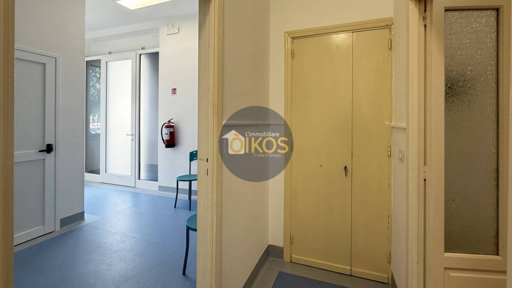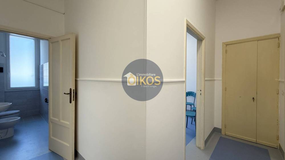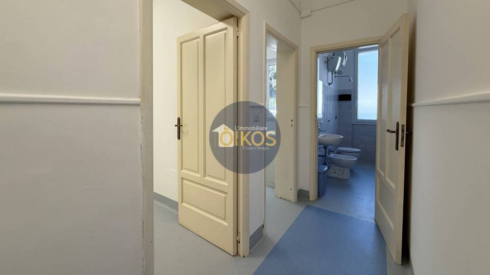 Lappartamento, ha accesso privato da cancelletto esterno, attualmente locato, con regolare contratto di locazione commerciale che usufruisce di una rendita certa e garantita; si tratta di un appartamento recentemente ristrutturato a cui è stata attribuita una nuova destinazione duso - Uffici e studi privati, con impianti e finiture regolarmente disposte all'attività professionale; tale soluzione conta 4 vani più bagno ed un secondo bagno accessibile ovvero ad utilizzo disabili. Limmobile è munito di climatizzatori, infissi in alluminio con doppio vetro e zanzariere, tutti gli ambienti sono comodi e ampi, arieggiati e luminosi.