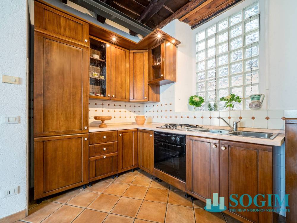 Il bilocale, caratterizzato da suggestive pareti con pietre a vista e splendide travi in legno, che conferiscono unatmosfera calda ed accogliente, è situato in un contesto cortilizio munito di portone automatizzato e privo di servizio di portineria.