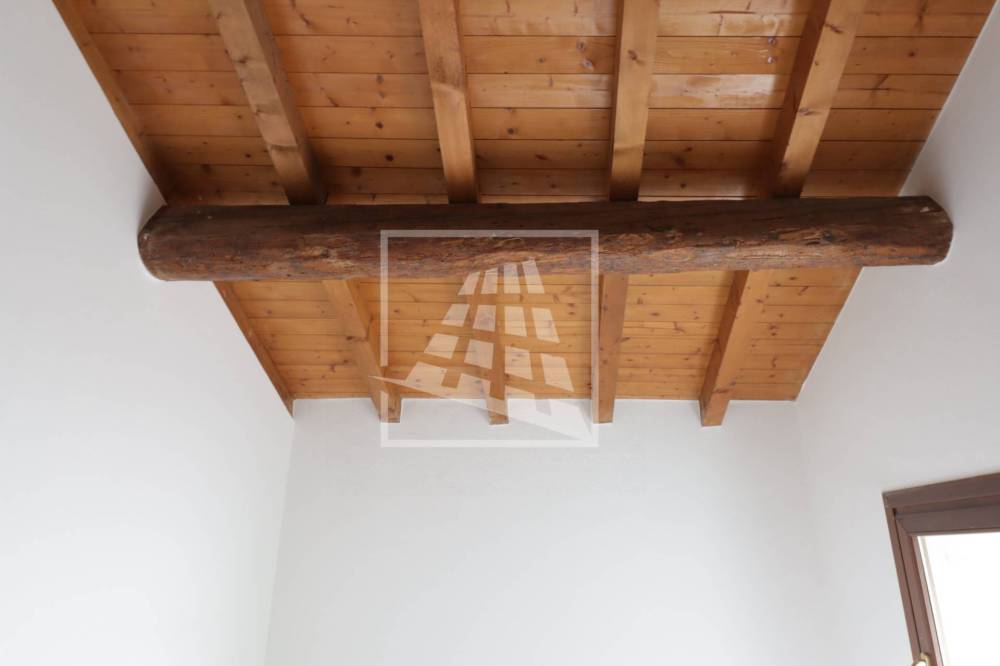 L'abitazione è caratterizzata da suggestivi soffitti in legno con travi a vista, che conferiscono un'atmosfera calda e accogliente.