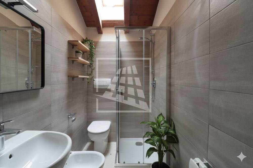Si compone di ingresso su disimpegno, un luminoso soggiorno con cucina a vista, una camera da letto e un bagno completo di box doccia e velux.