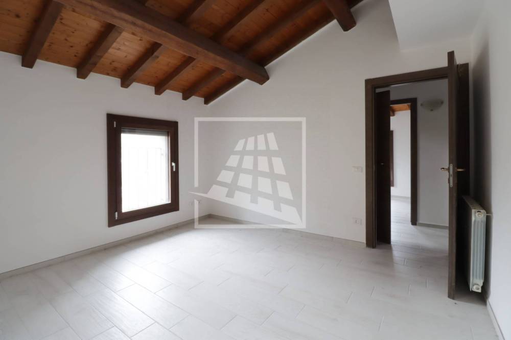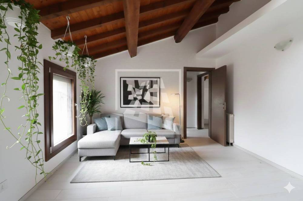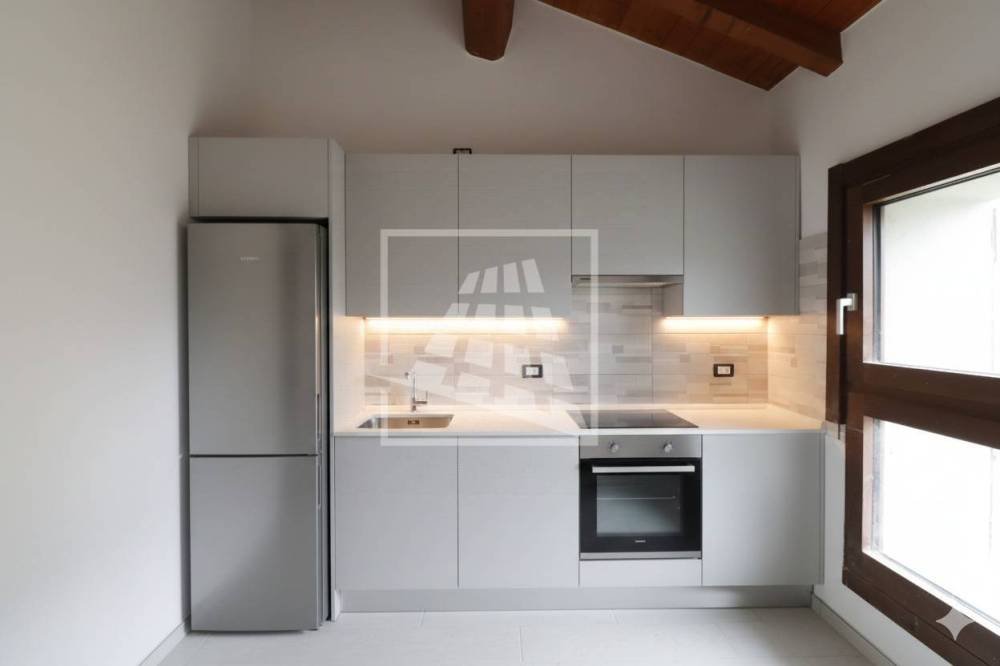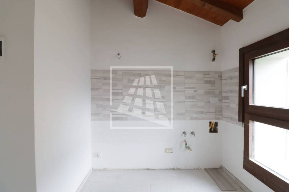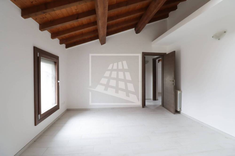 L'ingresso si apre su un luminoso soggiorno con angolo cottura, continua con un disimpegno che separa la zona notte, ospitando due camere da letto e un bagno completo di box doccia e velux.