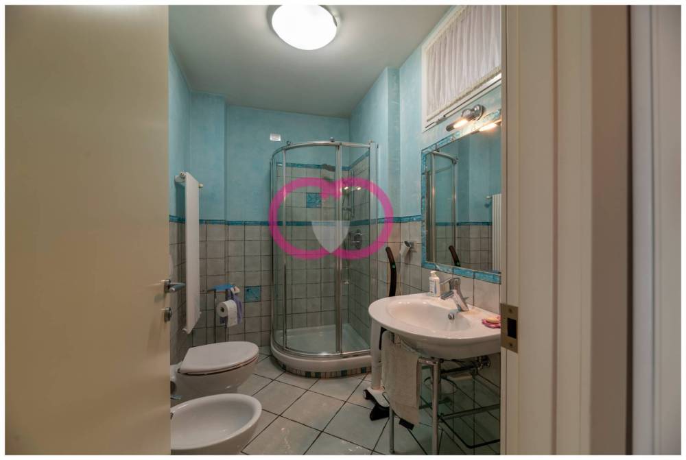 Un pratico disimpegno accompagna al bagno con doccia e al ripostiglio, collegato a un locale tecnico/lavanderia separato.