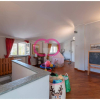 La cucina a vista è integrata in modo impeccabile, mentre la zona pranzo dialoga in continuità con lampia area relax, riscaldata dallatmosfera del termocamino e dalle pareti in pietra che aggiungono carattere e matericità.
