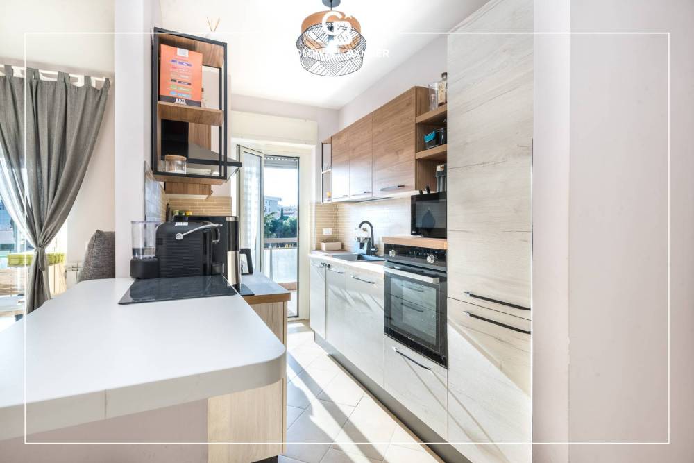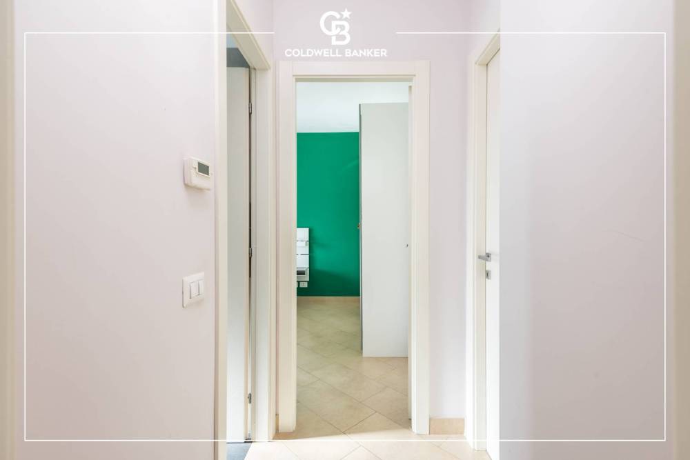 L'appartamento è disposto su un unico livello; gli spazi interni risultano comodi e ben distribuiti, tipici delle moderne concezioni; presentano subito all'ingresso un ampio salone collegato attraverso una grande finestra alla superfice esterna rendendola ben fruibile, una cucina a vista divisibile con penisola ben studiata che consente la convivialità durante il suo utilizzo ma allo stesso tempo dona privacy alla sala grazie ad una parziale divisione degli ambienti, il disimpegno che conduce alla zona notte dove sono collocati la camera matrimoniale di buone dimensioni, il servizio finestrato munito di cabina doccia e due grandi ripostigli di cui uno adibito come cabina armadio.
