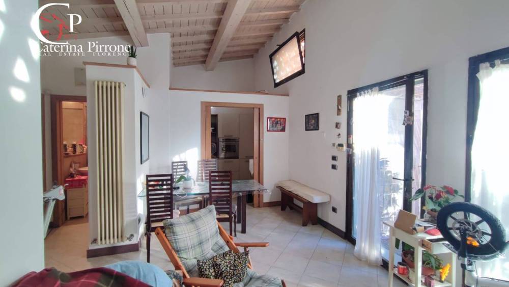 Antella collinare, in località Lappeggi all'interno del complesso ristrutturato della storica villa medicea di Lappeggi, vendesi trilocale ristrutturato (ex porzione di fienile) al piano terreno con giardino privato, posto auto e taverna (nevaia) di circa mq.30 adibita a studio/cameretta.