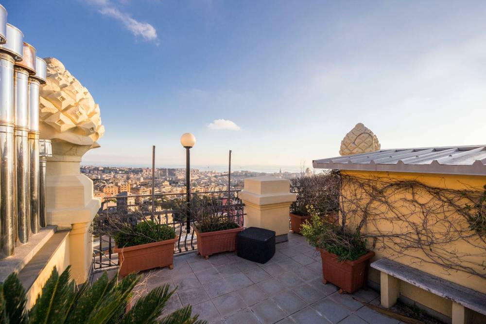 Lappartamento, posto all'ultimo piano con ascensore di un elegante palazzo signorile appena ristrutturato nella sue parti comuni, si compone di un grande ingresso con porta blindata che espone su un ampio soggiorno, cucina abitabile, due stanze, un ulteriore vano uso ufficio, due bagni, dispensa e ben cinque balconi. In aggiunta abbiamo anche un grande terrazzo sovrastante di proprietà. La vista che si può apprezzare dalla casa e dal terrazzo è semplicemente qualcosa di impareggiabile e l'esposizione solare è pressochè totale. Il riscaldamento è centralizzato con valvole termostatiche e contabilizzatori di calore.