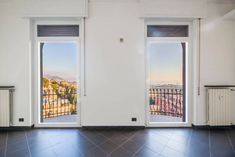 VIA CROCCO GENOVA CASTELLETTO SIGNORILE APPARTAMENTO ULTRAPANORAMICO ULTIMO PIANO IN AFFITTO CON CINQUE BALCONI, BOX AUTO E TERRAZZO SOVRASTANTE.