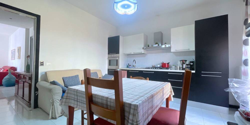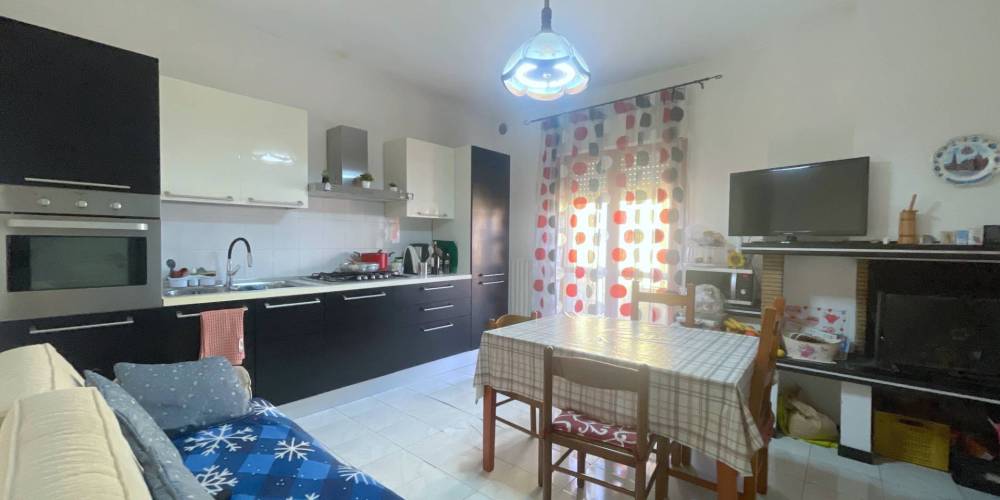 La casa si apre su un comodo disimpegno e prosegue con un soggiorno ampio, una grande cucina abitabile con camino e retro-cucina, tre camere (due matrimoniali e una singola generosa), due bagni uno dei quali con finestra e un corridoio dedicato alla zona notte.