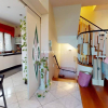 Una scala interna di gusto contemporaneo conduce al primo piano, dove un comodo disimpegno apre alla zona notte.