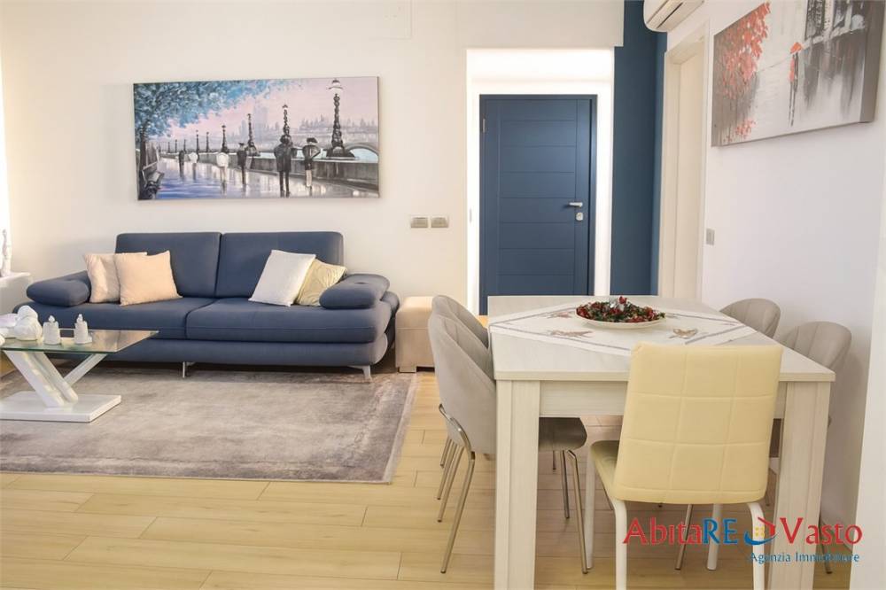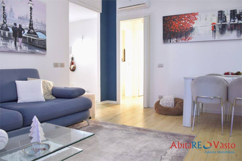 Vasto Marina - Centro, a pochi passi dal marenIn posizione centralissima e riservata, all'interno di una palazzina recintata, proponiamo in vendita esclusiva un appartamento al terzo ed ultimo piano, ideale per chi desidera vivere il mare tutto l'anno o godere di una raffinata casa per le vacanze. L'immobile, completamente ristrutturato nel 2024 e in perfetto stato di manutenzione, si presenta accogliente, luminoso e pronto da abitare. L'ingresso conduce a un ampio soggiorno con angolo cucina a vista, seguito da disimpegno, 2 camere da letto, bagno con box doccia e un terrazzo abitabile, parzialmente chiuso con comode vetrate, dal quale si apprezza una gradevole vista mare.nDotato di riscaldamento autonomo, climatizzazione e posto auto coperto di proprietà all'interno dell'area condominiale. La vendita comprende tutti gli arredi, consentendo un immediato utilizzo senza ulteriori investimenti.nLibero a rogito. Palazzina priva di ascensore. Una soluzione completa, curata e strategicamente posizionata, perfetta per chi sogna di abitare a pochi passi dalla spiaggia, senza rinunciare a comfort e qualità.nTrattativa riservata in agenzia.n - Maggiori Dettagli: Lavastoviglie, Porta blindata, Vista Mare, Climatizzato, Rete ADSL