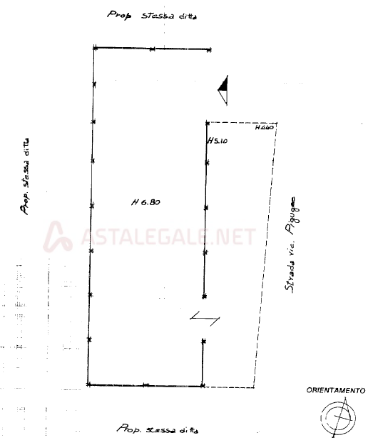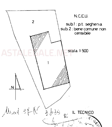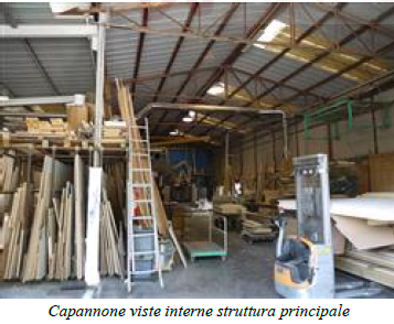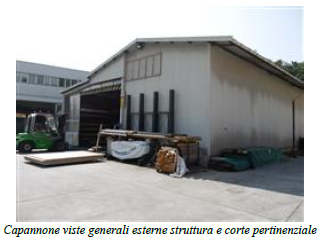A. Capannone artigianale con ampia corte logistica pertinenziale recintata, il tutto della superficie commerciale di 470,50 mq., avente struttura portante costituita da pilastri e travature in acciaio e coperto con lastre ondulate in materiale plastico.