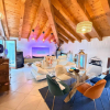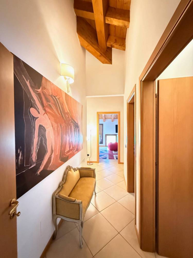 Varcando la soglia, sarete accolti da un open space dove il soggiorno e la cucina convivono in perfetta armonia. Il vero protagonista è il soffitto: spettacolari travi in legno che accolgono la luminosità degli spazi, conferendo un tocco di eleganza senza tempo e unatmosfera intima e avvolgente. È lambiente ideale per cene romantiche o per ospitare gli amici in un contesto raffinato.